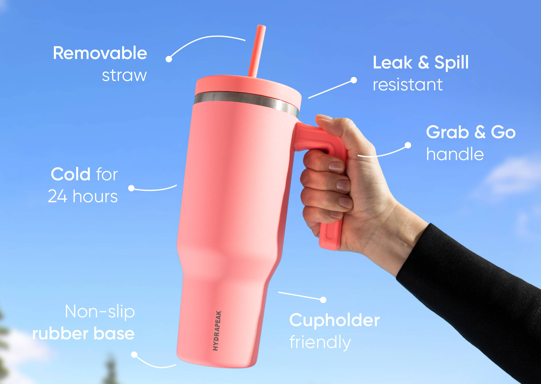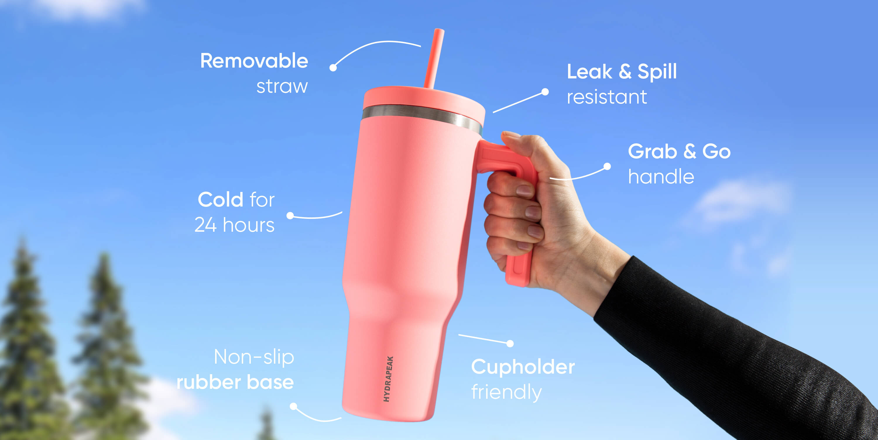 Hydrapeak bottles are perfectly sized to fit standard cup holders with ease. For those with vehicles featuring oversized cup holders, rest assured that Hydrapeak water bottles also fit into these larger compartments. Our adaptable design ensures stability and convenience, even in larger cup holders, eliminating concerns about spills or awkward positioning while enjoying your favorite beverage on the go.